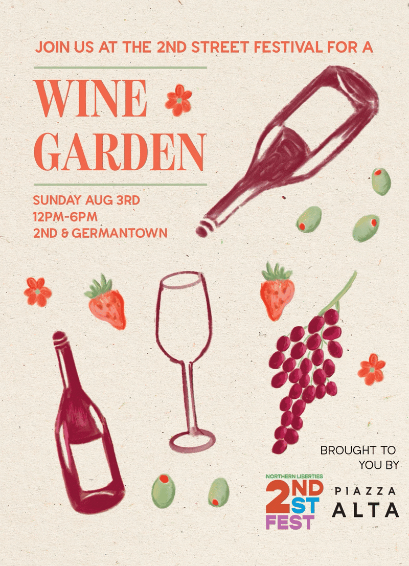 To promote Piazza Alta’s Wine Garden activation at the 2nd Street Festival, I designed physical collateral including a banner (left) and a series of animated teasers for paid and organic social (below) that blended my hand-drawn illustrations with bold, engaging motion. The goal was to build visual anticipation across multiple posts, without relying on photography.